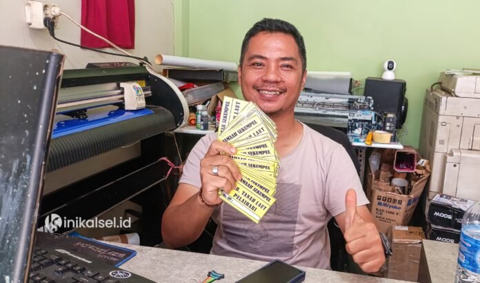 “Kami setiap tahun selalu mencetak dan membagikan stiker gratis untuk warga Tanah Laut yang mau ke acara Haul Guru Sekumpul,” ujar Heriyadi, Owner Adiba Print, kepada inikalsel.id, Kamis (18/12/2025), di ruang kerjanya.