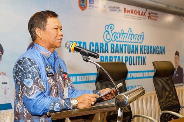 Badan Kesatuan Bangsa dan Politik (Bakesbangpol) Provinsi Kalimantan Selatan menggelar Sosialisasi Tata Cara Bantuan Keuangan Partai Politik di Hotel Rattan Inn, Banjarmasin, Kamis (16/10/2025).