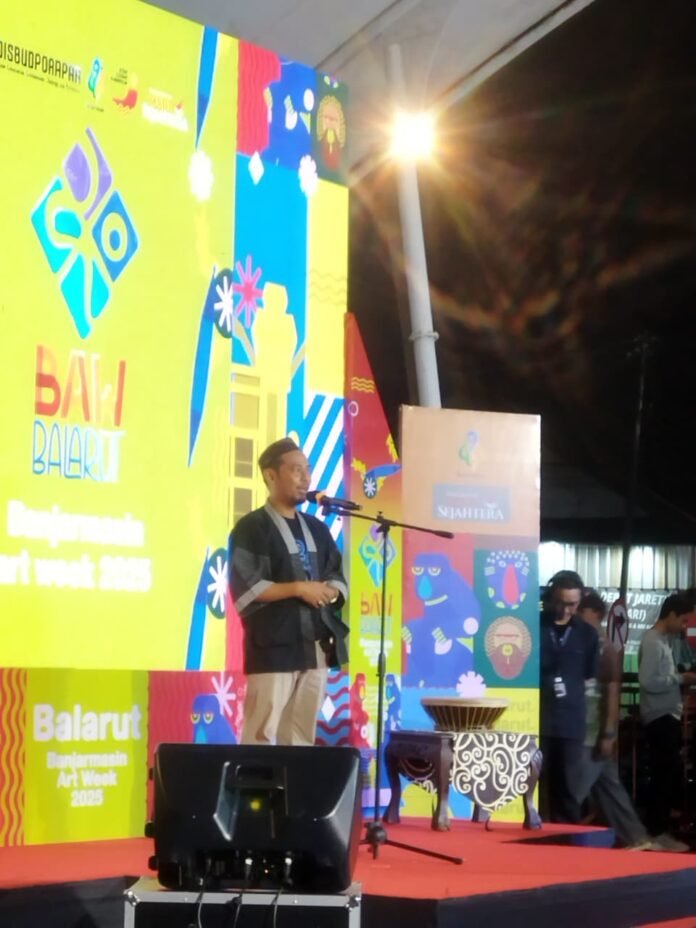 “Balarut adalah metafora untuk perubahan dan adaptasi. Setiap karya seni membawa makna berbeda bagi setiap orang, tergantung pengalaman pada perspektifnya,” jelas Ketua Dewan Kesenian Banjarmasin, Hajriansyah Sabtu (6/9/2025) pada pembukaan Banjarmasin Art Week (BAW).