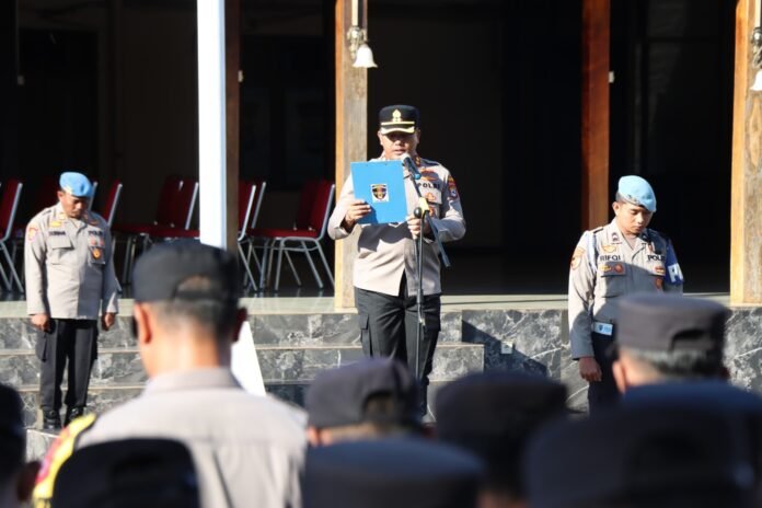 Apel tersebut diikuti oleh para Pejabat Utama, Kapolsek jajaran, serta seluruh personel yang terdiri dari perwira, bintara, ASN, hingga PHL. Kegiatan berlangsung khidmat, dengan seluruh peserta menyimak arahan pimpinan sebagai pedoman dalam pelaksanaan tugas sehari-hari.