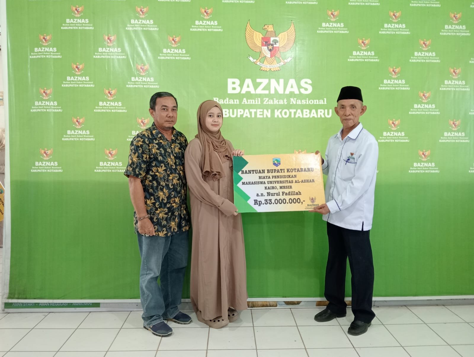 Bantuan pendidikan yang diberikan Pemerintah Kabupaten Kotabaru melalui Baznas sebesar Rp33 juta, yang akan berangkat menuntut ilmu ke Hadramaut, Yaman dan Universitas Al-Azhar Kairo, Mesir.