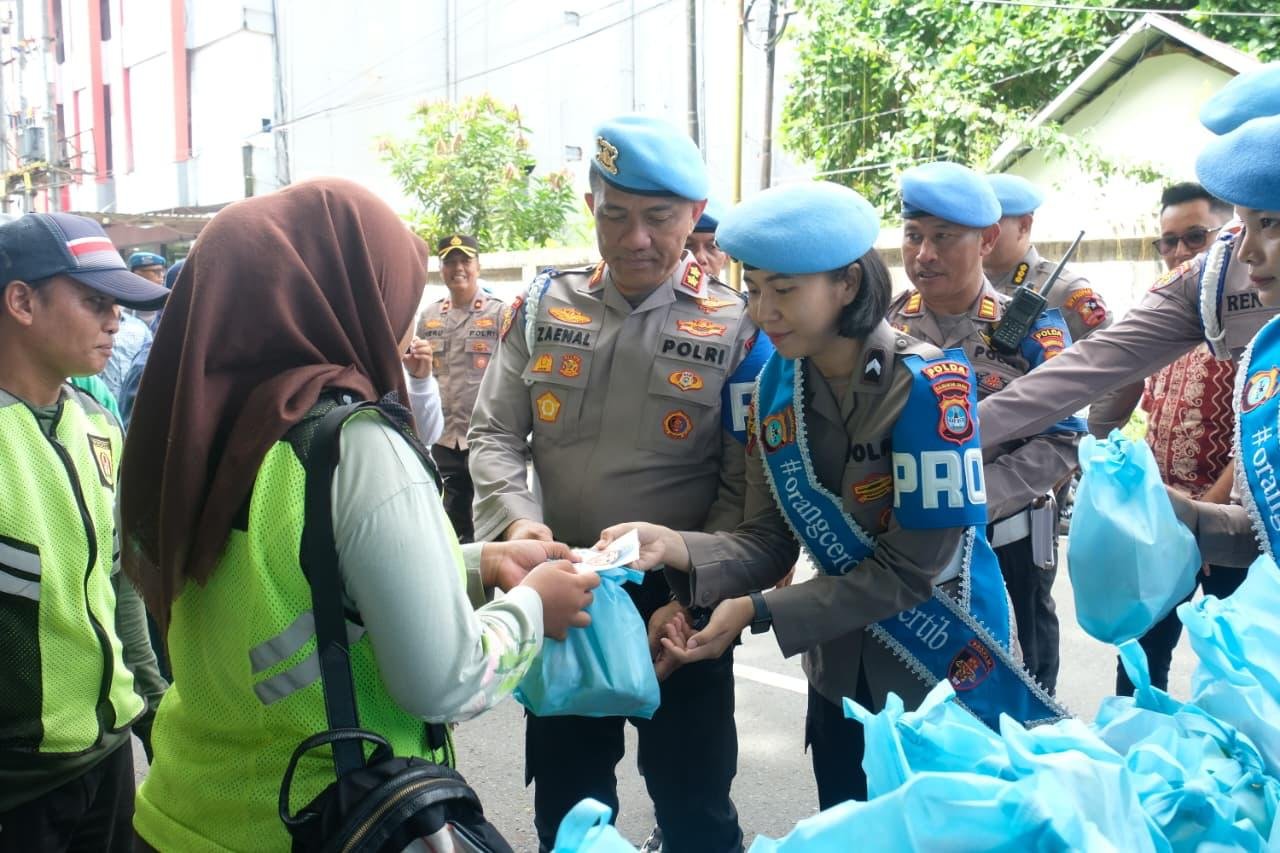 “Bidang Propam Polda Kalsel membagikan 200 bingkisan makanan ringan Jumat Berkah untuk masyarakat. Hari ini sasaran kita petugas kebersihan, pengemudi ojol, dan ada juga relawan pemadam kebakaran,” paparnya.