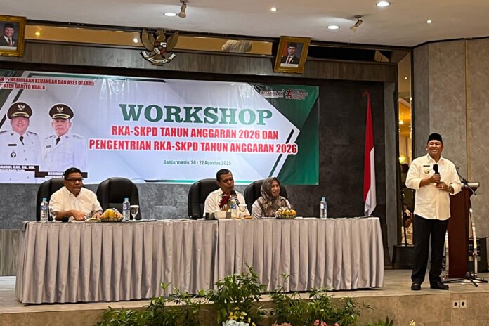 “Titik-titik prioritas yang dibutuhkan masyarakat harus menjadi perhatian utama. Pembangunan fisik, terutama perbaikan jalan yang rusak, perlu diprioritaskan agar manfaatnya dapat langsung dirasakan masyarakat,” ujar Bupati Barito Kuala saat membuka kegiatan Workshop dan Pengentrian RKA-SKPD 2026 di Hotel Roditha Banjarmasin, pada Rabu (20/8/2025).