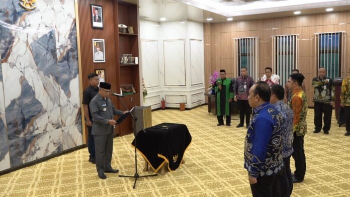 Bupati Kotabaru H. Muhammad Rusli, S.Sos., melantik dan mengambil sumpah/janji tiga pejabat Jabatan Pimpinan Tinggi (JPT) Pratama di lingkungan Pemerintah Kabupaten Kotabaru. Pelantikan berlangsung di Ruang Kerja Bupati Kotabaru pada Kamis (27/11/2025), dihadiri Sekretaris Daerah, para Staf Ahli, Asisten Sekda, serta Kepala Perangkat Daerah.