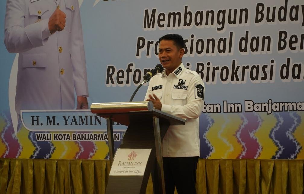 Pemerintah Kota Banjarmasin terus memperkuat budaya kerja aparatur sipil negara (ASN) yang berintegritas dan bebas dari praktik korupsi. Komitmen itu ditegaskan Wali Kota Banjarmasin, H. Muhammad Yamin HR, saat membuka kegiatan Bimbingan Teknis (Bimtek) Budaya Kerja di Lingkungan Pemerintah Kota Banjarmasin Tahun 2025, yang digelar di Calamus Ballroom Hotel Rattan Inn Banjarmasin, Rabu (5/11/2025).