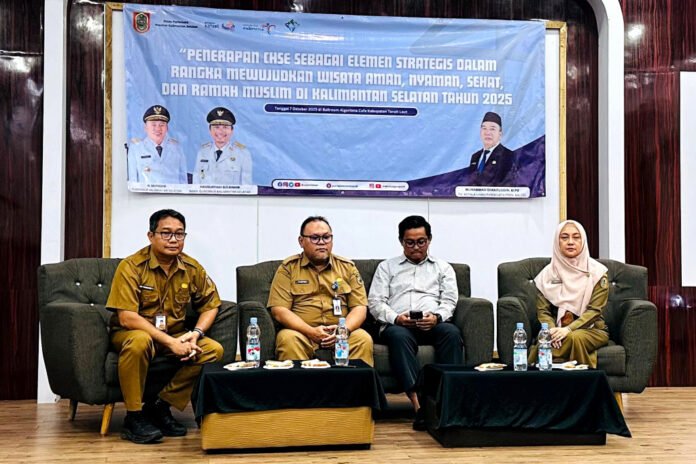 Dinas Pariwisata Provinsi Kalimantan Selatan menegaskan pentingnya penerapan standar Cleanliness, Health, Safety, and Environment Sustainability (CHSE) dalam pengembangan sektor pariwisata, ini disampaikan oleh Kepala Dinas Pariwisata Provinsi Kalimantan Selatan yang diwakili oleh Kepala Bidang Pengembangan Destinasi Pariwisata, Gusti Muhammad Yosalvina Yovani, saat membuka kegiatan bertema “Penerapan CHSE sebagai Elemen Strategis dalam Rangka Mewujudkan Wisata Aman, Nyaman, Sehat, dan Ramah Muslim di Kalimantan Selatan Tahun 2025” di Kabupaten Tanah Laut, Selasa (7/10/2025).