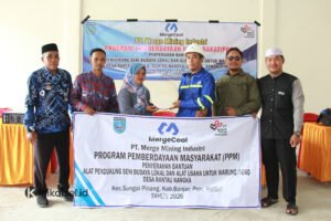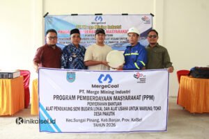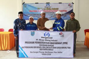 Empat pemerintah desa di Kecamatan Sungai Pinang menyampaikan apresiasi dan harapan besar atas pelaksanaan Program Pemberdayaan Masyarakat (PPM) PT Merge Mining Industri (MMI) dalam kegiatan penyerahan bantuan alat pendukung seni budaya lokal serta alat usaha untuk warung/toko, Kamis (26/2/2026).