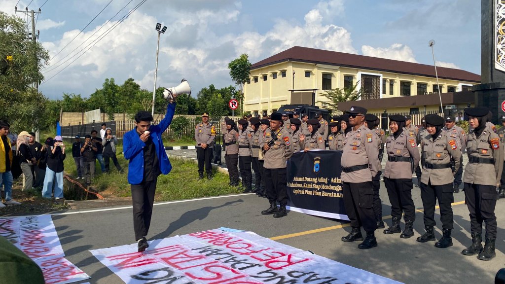 Dalam orasinya di depan gerbang Mapolda, Presiden Mahasiswa UIN Antasari, Ahmad Munawir Sazali, menyampaikan kritik tajam terkait krisis kepercayaan masyarakat terhadap institusi kepolisian saat ini. Ia mempertanyakan fungsi aparat yang seharusnya menjadi pelindung, namun justru dianggap menjadi sumber ketakutan.