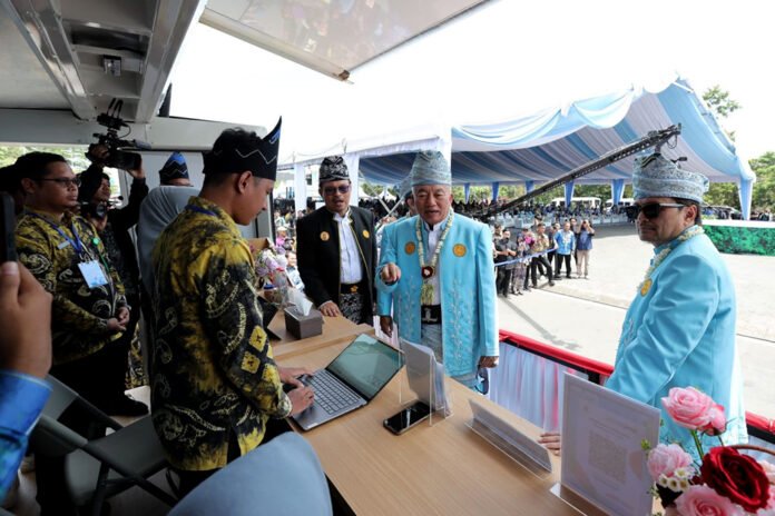 Dalam rangkaian Hari Jadi ke-75 Provinsi Kalimantan Selatan, Gubernur Kalsel H. Muhidin didampingi Wakil Gubernur H. Hasnuryadi Sulaiman dan Sekdaprov H. Muhammad Syarifuddin meluncurkan Gebyar Panutan Pajak Kendaraan Bermotor (PKB) di halaman Kantor Gubernur Kalsel, Banjarbaru, Kamis (14/8/2025).