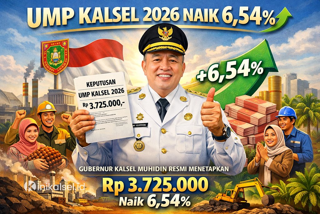 Gubernur Kalimantan Selatan, Muhidin, secara resmi menetapkan Upah Minimum Provinsi (UMP) Kalimantan Selatan Tahun 2026 sebesar Rp3.725.000, atau mengalami kenaikan 6,54 persen dibandingkan UMP tahun 2025 yang sebelumnya berada pada angka Rp3.496.150.