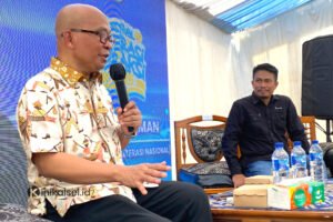 “Bayangkan, dari satu buku bisa menyekolahkan anak-anak saya. Tiap kali buku dicetak ulang, rekening saya bertambah, dan itu hasil dari kekuatan kata yang ditulis dengan niat baik,” katanya disambut tepuk tangan peserta.