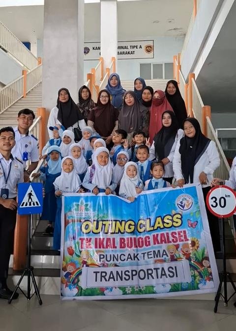 TK IKAL Bulog Banjarmasin, pada Senin (27/4/2026), mengadakan kegiatan puncak dengan tema transportasi yang melibatkan siswa-siswi dan berbagai pihak, termasuk Dinas Perhubungan dan Trans Banjarbakula.
