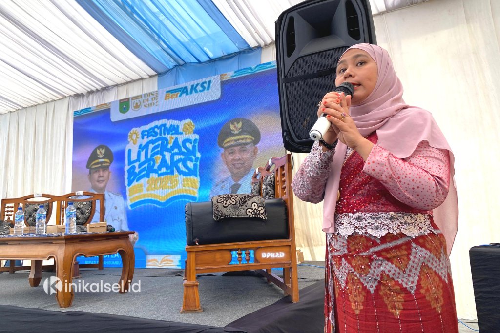 Kepala Dinas Perpustakaan dan Kearsipan Kabupaten Tanah Bumbu, Yulia Rahmadani, secara resmi membuka kegiatan Talkshow Literasi bersama penulis nasional Maman Suherman atau akrab disapa Kang Maman, pada rangkaian Festival Literasi Beraksi 2025 yang digelar di Bandara Bersujud, Batulicin, Kabupaten Tanah Bumbu, Provinsi Kalimantan Selatan, Sabtu (18/10/2025).