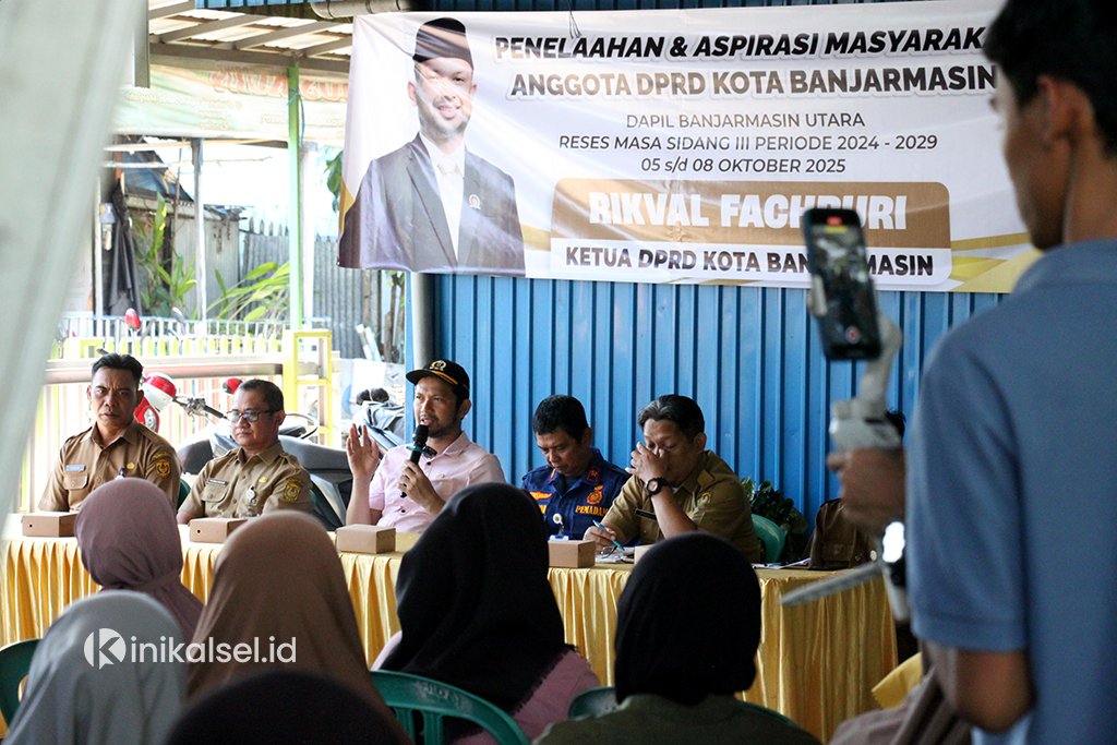 Puluhan wwarga Kelurahan Pangeran, Kecamatan Banjarmasin Utara mengikuti Reses Masa Sidang III Tahun 2025 dengan melaksanakan penelaahan dan penyerapan aspirasi, yang juga diikuti dari pejabat SKPD, di antaranya Dinkes, PUPR, Disdik, Perkim, dan Damkar.