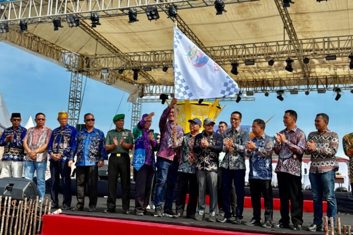 Gubernur Kalsel yang diwakili Staf Ahli Gubernur Bidang Kemasyarakatan dan SDM, Sulkan, SH., MM bersama Bupati Kotabaru Muhamamd Rusli, S. Sos yang diwakili Staf Ahli Bidang Ekonomi, Johanuddin, S. Pd., MM dengan didampingi Kepala Dinas Pariwisata, Pemuda dan Olahraga, Sonny Tua Halomoan, ST., M. E melepas peserta pawai budaya dan atraksi seni budaya yang diikuti peserta dari luar provinsi dan Kabupaten/Kota yang ada diwilayah Kalimantan Selatan, Kecamatan, seluruh etnis dan komunitas Se-Kabupaten Kotabaru, yang berlangsung di Obyek Wisata Siring Laut, Sabtu (23/08/2025).