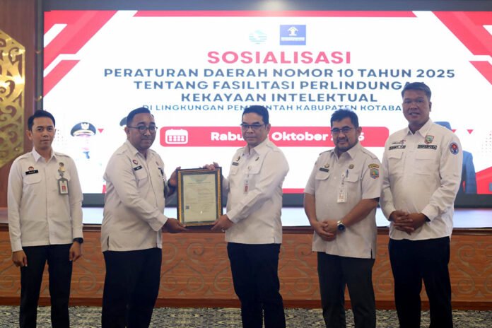 Pemerintah Kabupaten (Pemkab) Kotabaru melalui Bagian Hukum Sekretariat Daerah menggelar Sosialisasi Peraturan Daerah (Perda) Nomor 10 Tahun 2025 tentang Fasilitasi Perlindungan Kekayaan Intelektual, Rabu (8/10/2025), di Aula Bamega Lantai 2, Sekretariat Daerah Kabupaten Kotabaru, Sebelimbingan.