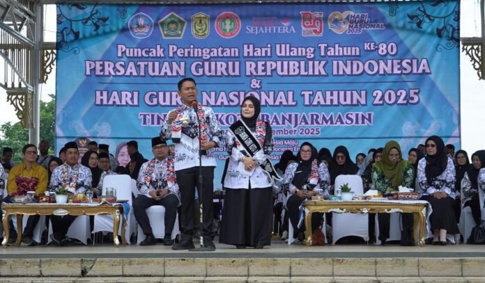 Pemerintah Kota Banjarmasin melalui Dinas Pendidikan menggelar kegiatan puncak peringatan Hari Ulang Tahun (HUT) ke-80 Persatuan Guru Republik Indonesia (PGRI) sekaligus Hari Guru Nasional (HGN) Tahun 2025 tingkat Kota Banjarmasin. Kegiatan tersebut berlangsung di halaman Balai Kota Banjarmasin, Sabtu (13/12), dan diikuti ribuan guru dari berbagai jenjang pendidikan.