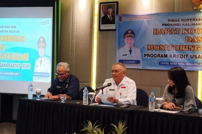Sekretaris Daerah Provinsi Kalimantan Selatan, Muhammad Syarifuddin, diwakili oleh Kepala Dinas Koperasi dan UKM Kalsel, Gusti Yanuar Noor Rifai, menyampaikan hal tersebut saat membuka Rapat Koordinasi Tim Monitoring dan Evaluasi (Monev) Program KUR Tahun 2025, di salah satu hotel di Banjarmasin, Rabu (5/11/2025).