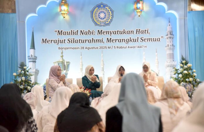Ketua Tim Penggerak PKK Provinsi Kalsel, Hj. Fathul Jannah Muhidin, dalam sambutannya menekankan bahwa peringatan Maulid Nabi harus dimaknai lebih dari sekadar rutinitas tahunan. Menurutnya, perayaan ini menjadi momentum penting untuk memperkuat iman dan menumbuhkan kecintaan kepada Rasulullah SAW.