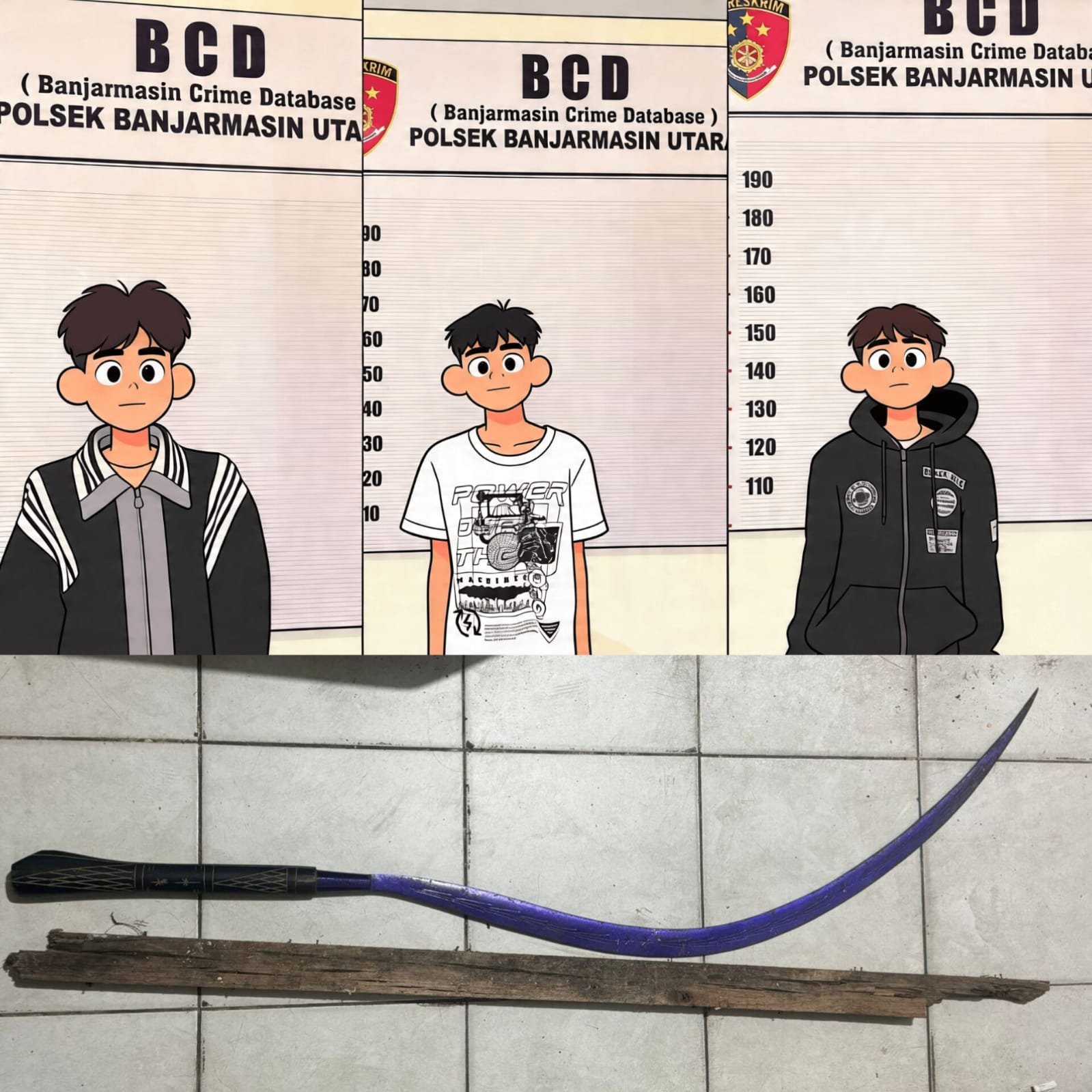 Kini ketiga remaja tersebut berserta barang bukti sudah diamankan di Polsek Banjarmasin Utara guna proses hukum lebih lanjut.