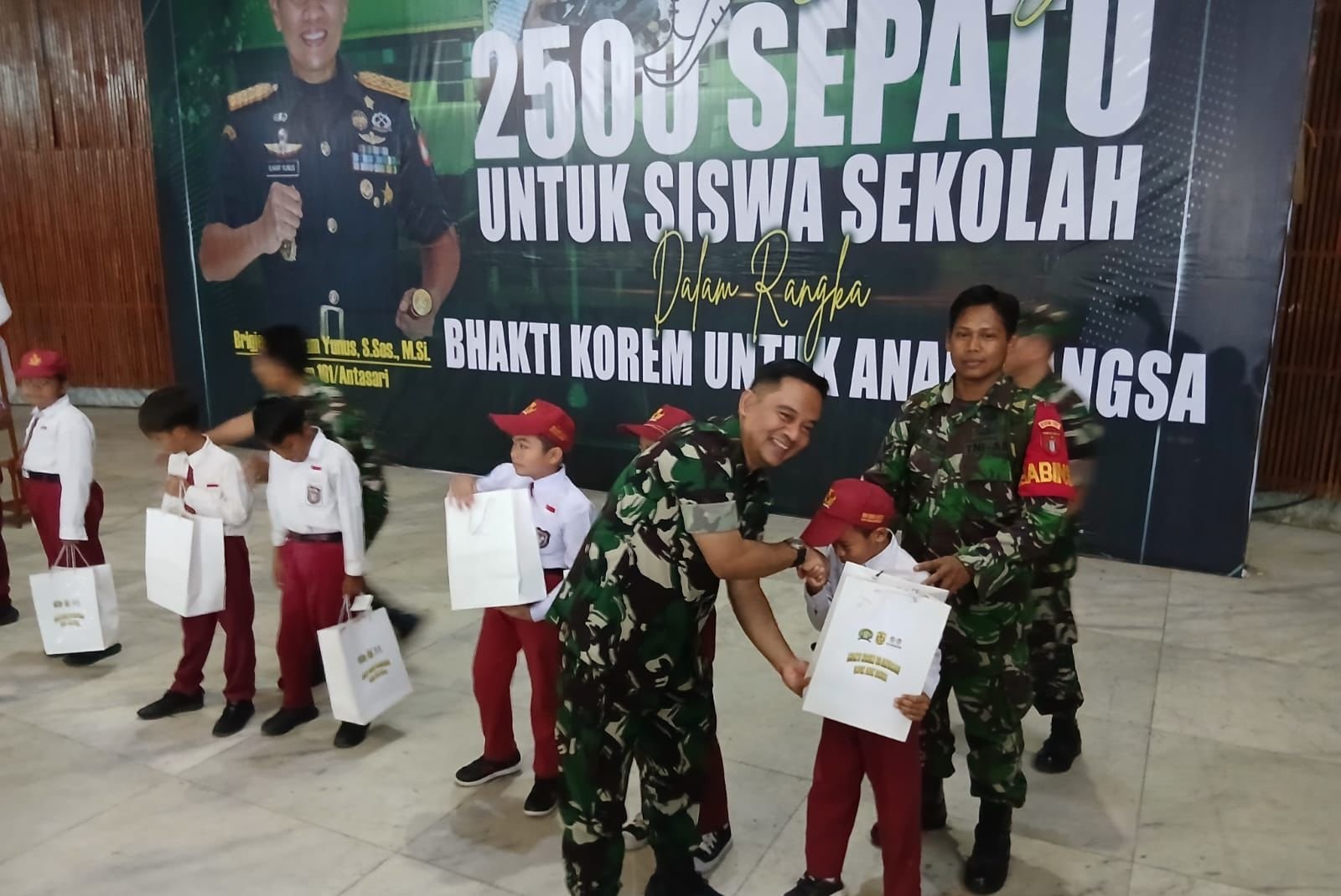 Komandan Korem (Danrem) 101/Antasari Brigjen TNI Ilham Yunus turut hadir serta memimpin kegiatan Berbagi 2.500 Sepatu untuk Siswa Sekolah sebagai bagian dari bakti TNI kepada masyarakat dalam mendukung peningkatan kualitas pendidikan generasi muda.