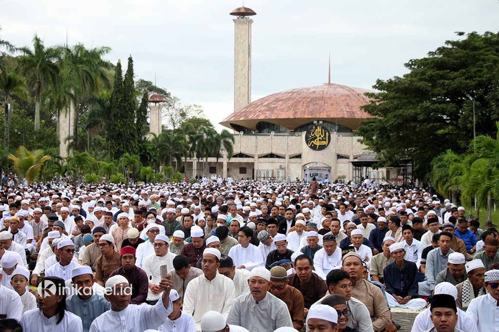 Ribuan warga Kota Banjarmasin melaksanakan salat Idulfitri 1446 Hijriah di masjid Sabilal Muhtadin, Senin (31/3/2025). Tampak Gubernur Kalimantan Selatan H Muhidin dan Wakil Gubernur Hasnuryadi Sulaiman bersama pejabat lainnya. As ![]()
