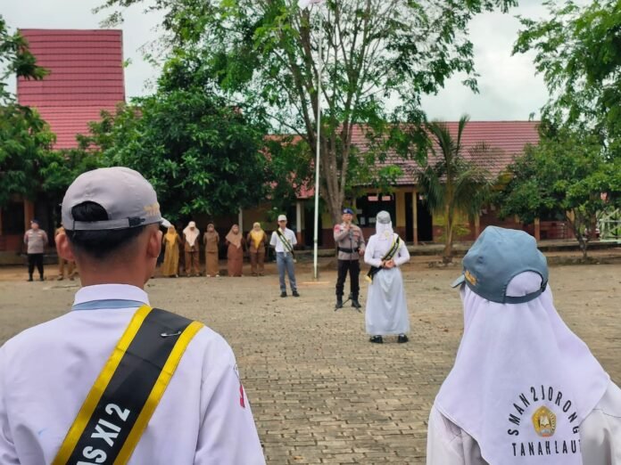 Satuan Polisi Perairan dan Udara (Sat Polairud) Polres Tanah Laut menghadiri undangan sebagai pembina upacara di SMA Negeri 2 Jorong, Desa Sungai Baru, Kecamatan Jorong, Kabupaten Tanah Laut, Kalimantan Selatan, Senin (27/4/2026).