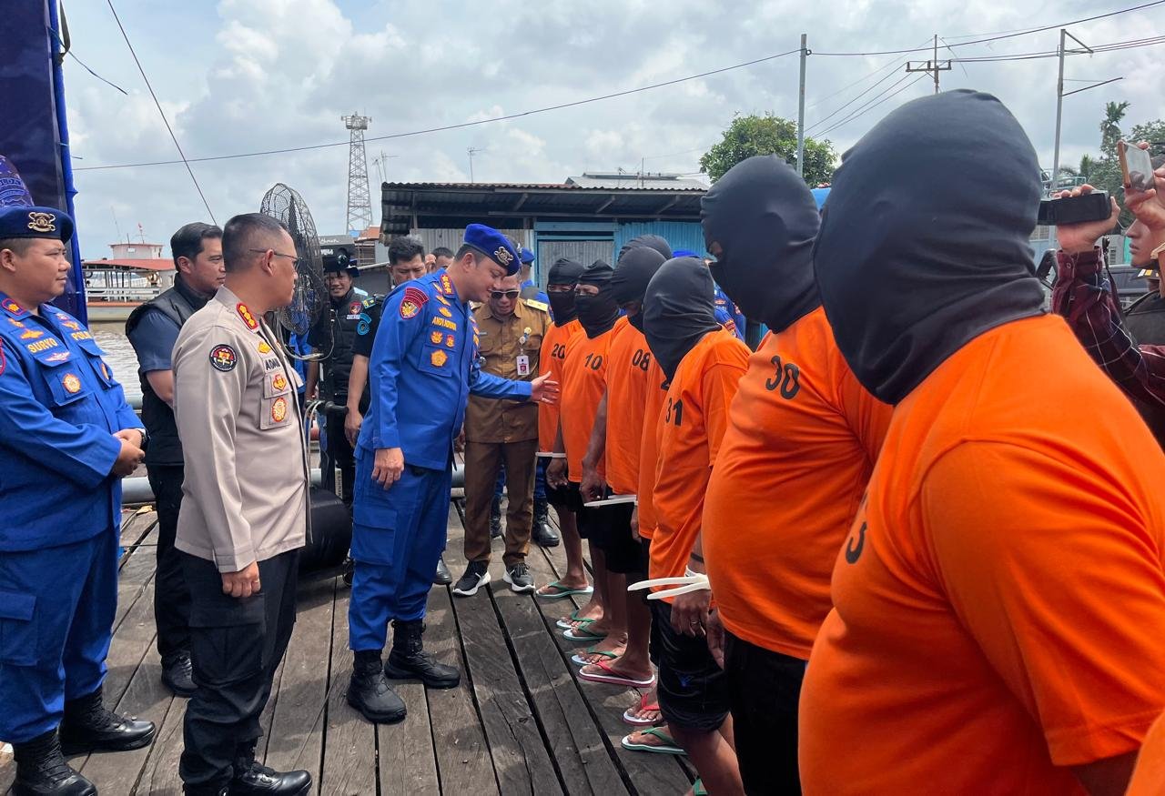 Dir Polairud Polda Kalsel, Kombes Pol Andi Adnan didampingi Kabid Humas, Kombes Pol Adam Erwindi menerangkan Tim gabungan Gakkum Ditpolairud hampir 1 jam melakukan pengejaran ke empat kapal, yang beroperasi di jarak 23 mil laut.