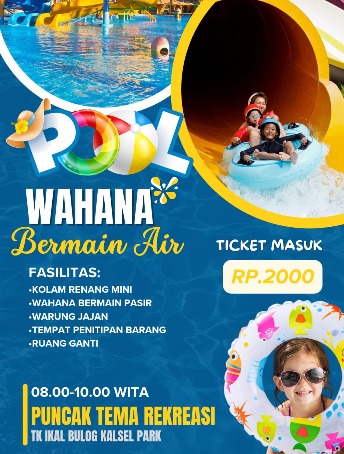 “Hari ini TK Ikal Bulog mengadakan kegiatan puncak tema rekreasi dengan menghadirkan wahana bermain air yang seru dan menyenangkan. Anak-anak diajak merasakan suasana rekreasi seperti di tempat wisata sungguhan,” ujarnya.