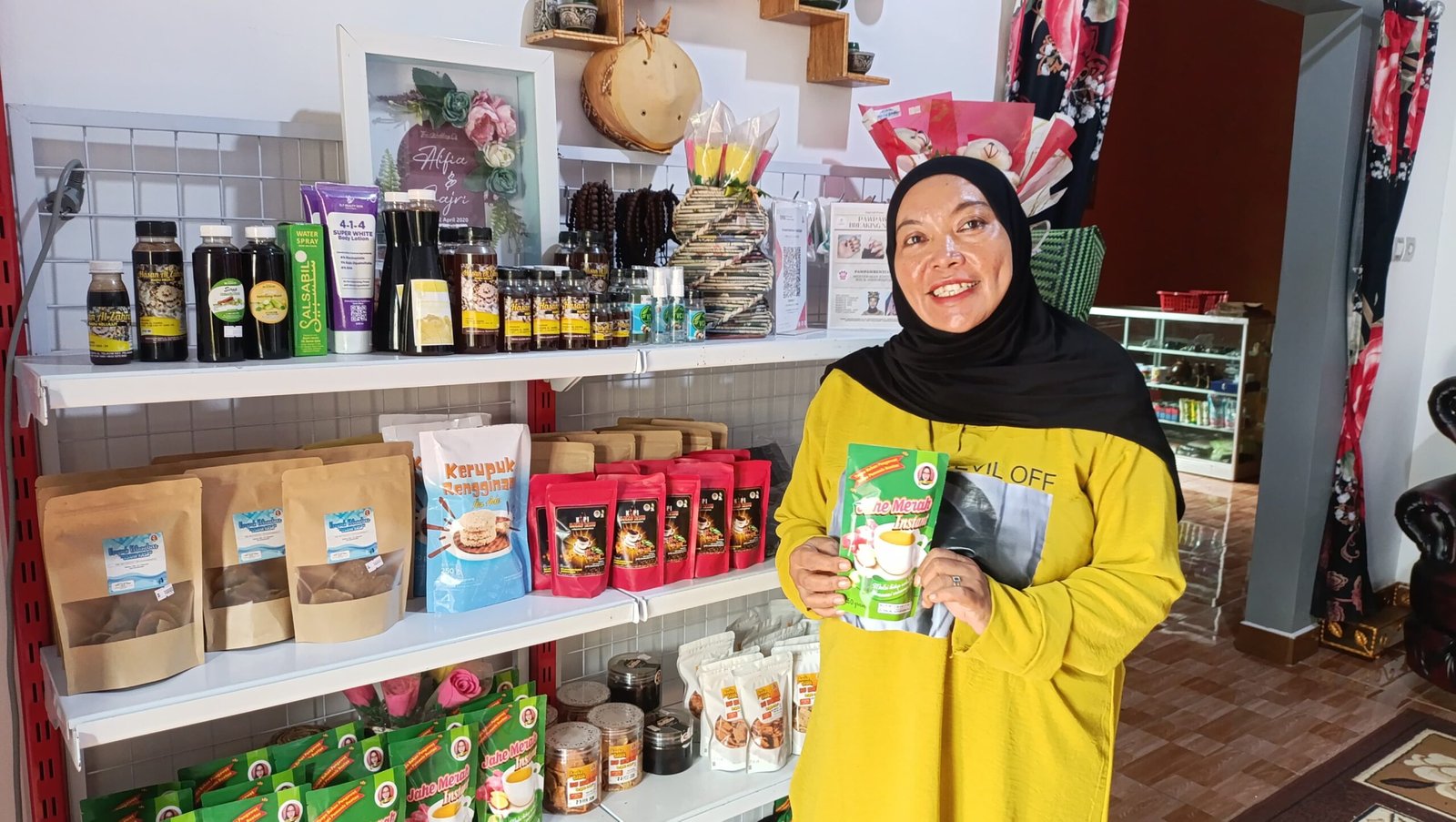 Produk Jahe Merah milik Bu Kokom, salah satu pelaku UMKM asal Desa Tirtajaya, Kabupaten Tanah Laut, berhasil menembus pasar internasional. Usaha yang dirintis sejak 2014 ini mulai memiliki legalitas usaha pada 2017, seiring perkembangan pemasaran yang semakin modern.