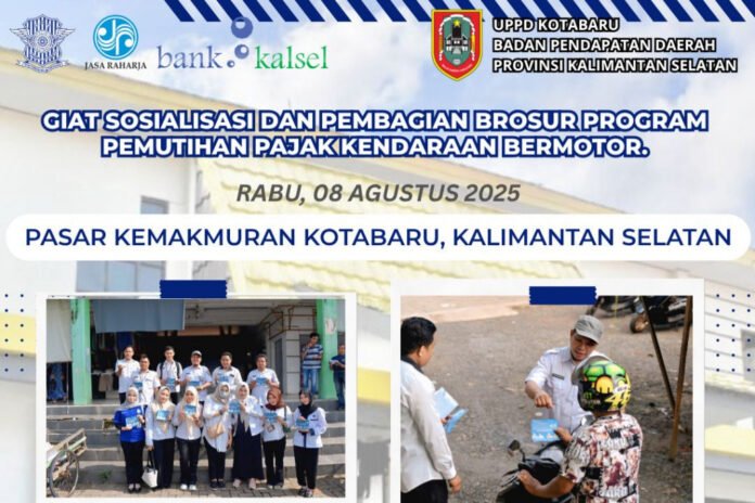 Pemerintah Provinsi Kalimantan Selatan melalui UPPD Samsat Kabupaten Kotabaru terus berlakuan program pemutihan Pajak Kendaraan Bermotor (PKB) yang dimulai pada 04 Agustus hingga 31 Desember dan Gebyar Panutan Pajak Kendaraan Bermotor 2025. Program ini diharapkan dapat dimanfaatkan masyarakat dengan sebaik-baiknya.