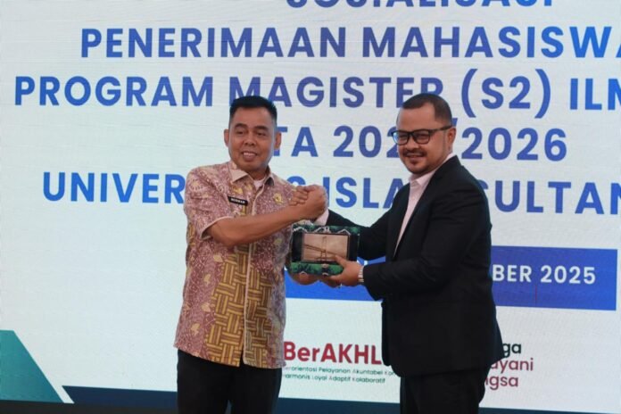Wakil Bupati Barito Kuala, Herman Susilo, menghadiri sekaligus memberikan sambutan pada acara Sosialisasi Penerimaan Mahasiswa Baru Program Magister (S2) Ilmu Hukum Tahun Ajaran 2025–2026 Universitas Islam Sultan Agung (UNISSULA). Kegiatan tersebut turut diisi oleh Kaprodi Magister Hukum UNISSULA, Dr. Andri Wijaya Laksana, S.H., M.H., M.Kn, bersama rombongan dan berlangsung di Aula Selidah, Kamis (04/12).