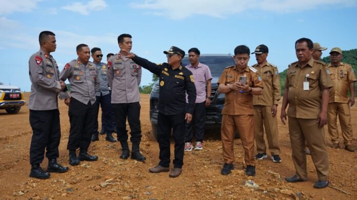 Bupati Kotabaru Muhammad Rusli, S. Sos meninjau lahan Pemerintah Daerah yang akan menjadi pengembangan kawasan baru Pulau Kepulauan, di Desa Tanjung Lalak Selatan, Kecamatan Pulau Laut Kepulauan, pada Selasa (28/04/2026) siang.